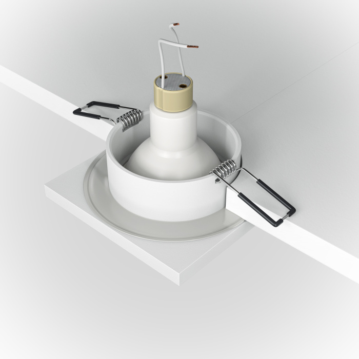 Используются лампочки с цоколем GU10 мощностью 50 Вт, в количестве 1 шт. Основной цвет модели DL083-01-GU10-SQ-W: Белый.
