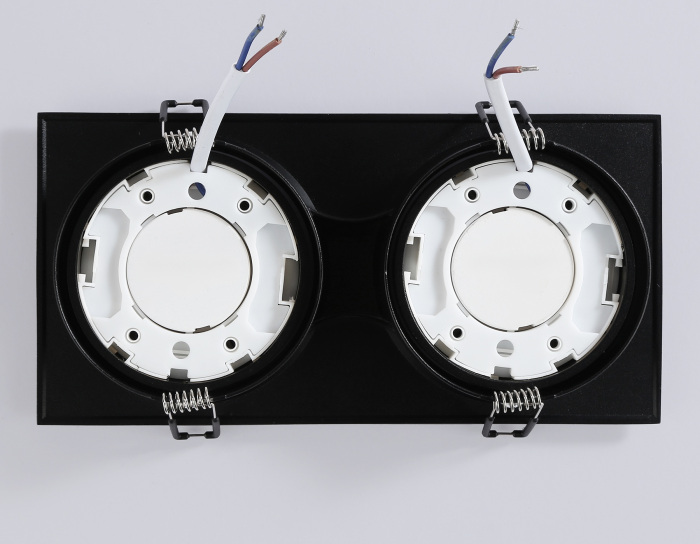Осветительный прибор выполнен в стиле Техно. Задействуются лампочки с цоколем GX53 мощностью 30 Вт, в количестве 2 шт.