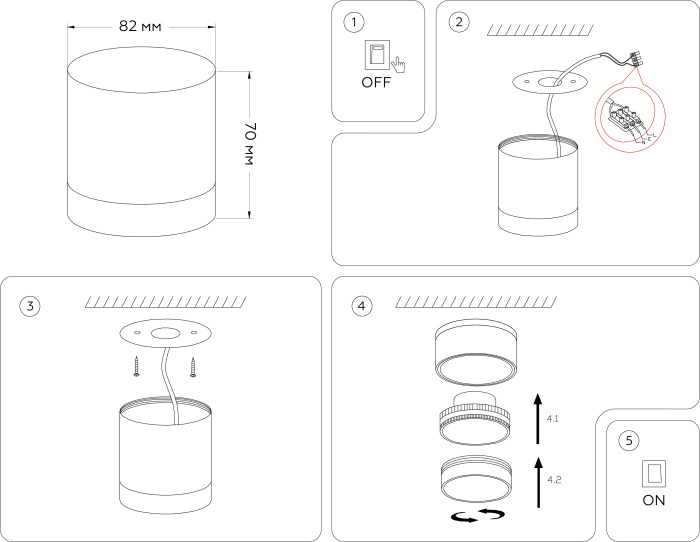 Осветительный прибор выполнен в стиле Минимализм. Задействуются лампы с цоколем GX53 мощностью 12 Вт, количеством 1 шт. Цвет модели TN5351: Чёрный.