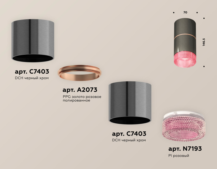 Используются лампочки с цоколем GU5.3 мощностью 10 Вт, в количестве 1 шт. Основной цвет модели XS7403102: Розовый,Чёрный.