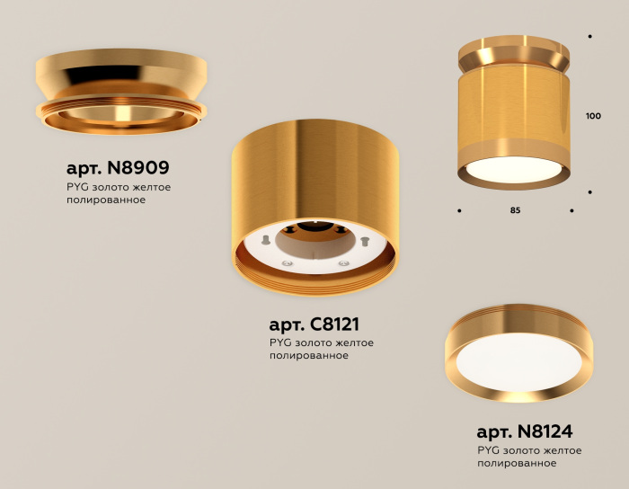 Подходят лампочки с цоколем GX53 мощностью 12 Вт, количеством 1 ед. Основной цвет модели XS8121035: Золотой.