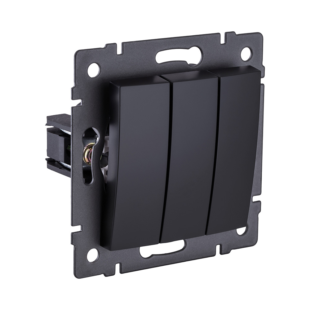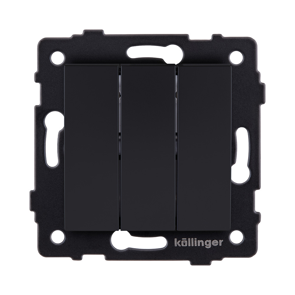 Трехклавишный выключатель 10А/250В, изогнутой формы, черный матовый Kollinger для Reflex, Aspekt, Eleganz REA-R-012BM