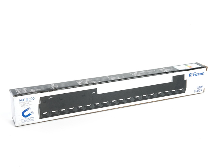 Трековый светильник 41935 – это продукция бренда Feron, относящаяся к коллекции MGN300. Размеры: длина 328 мм, высота 43 мм, ширина 22 мм. Светильники Feron 41935 произведены из высококачественных и прочных материалов: Алюминий, плафон - поликарбонат.