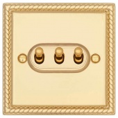 Тумблерный трехклавишный выключатель T&J Electric Colossal Янтарная парча CME203-2-PB