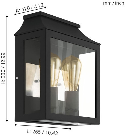 Уличный настенный светильник 97294 – это продукция бренда Eglo. Габаритные размеры: высота 330 мм, ширина 265 мм. Уличное освещение Eglo 97294 созданы с применением высококачественных и прочных материалов: металл, плафон - стекло.