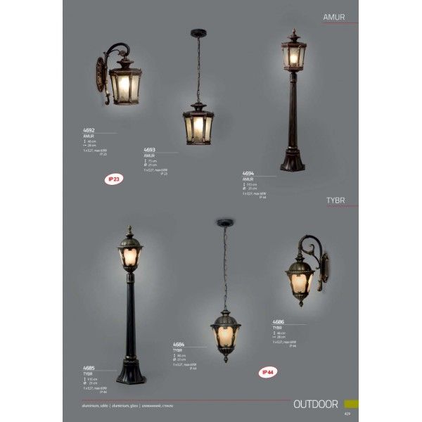 Осветительный прибор выполнен в стиле Винтажный. Подходят лампы цоколя E27 мощностью 60 Вт, в количестве 1 шт. Основной цвет модели 4684: Бронза.