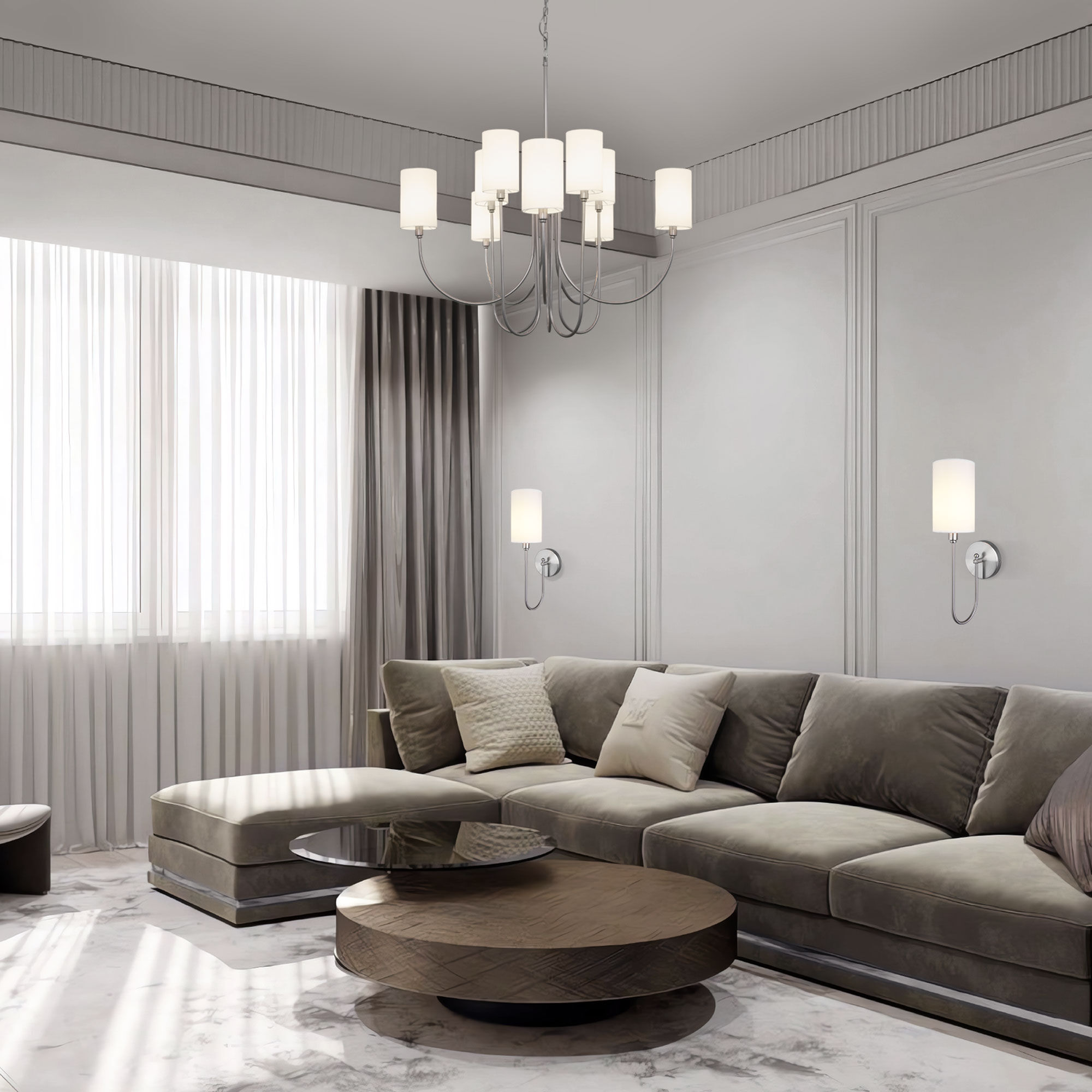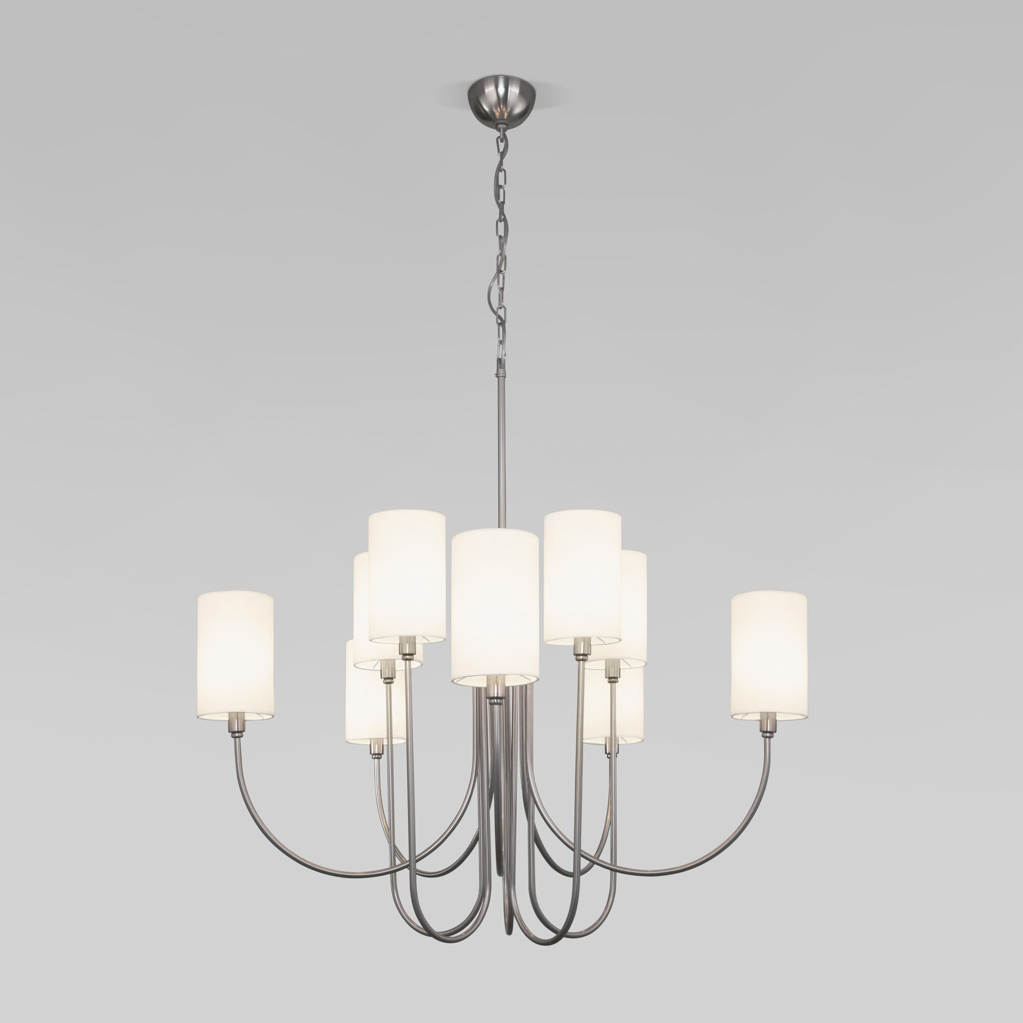 Умная подвесная люстра с тканевыми абажурами Eurosvet Abbey 60164/10 никель Smart a065750 белая