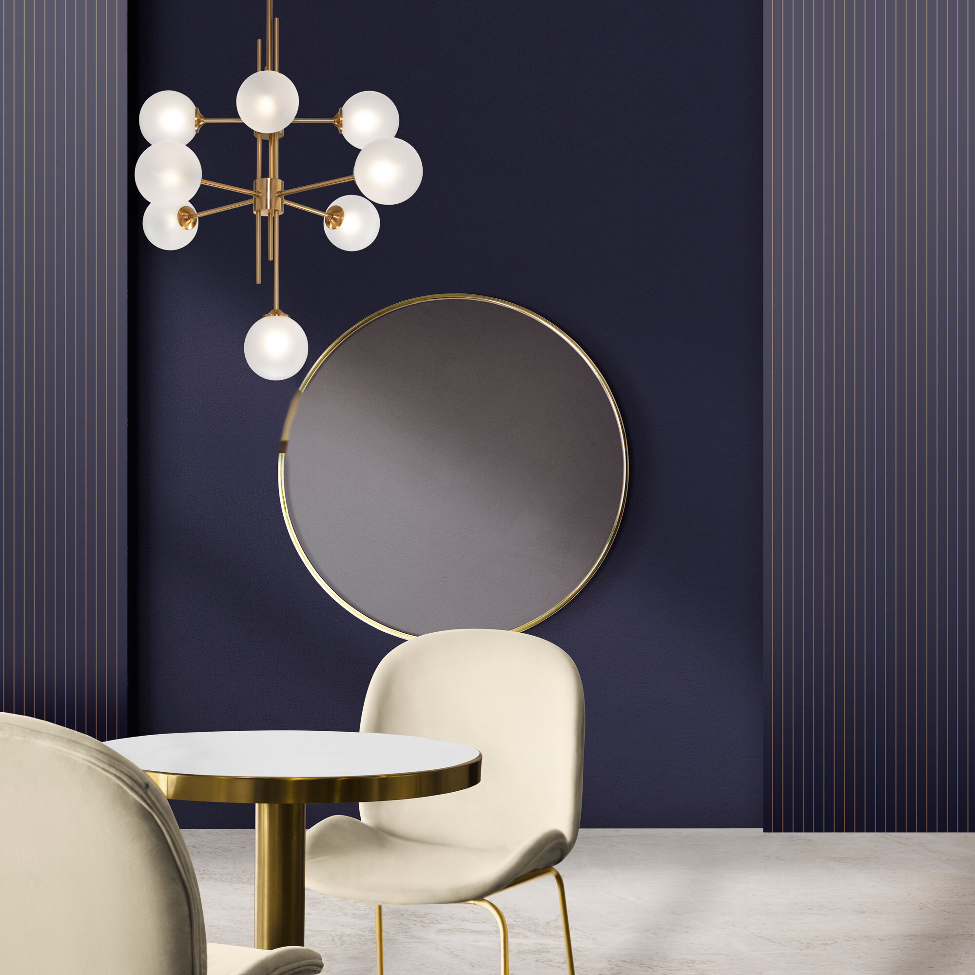 Осветительный прибор сделан в стиле Контемпорари. Задействуются лампы цоколя G9, количеством 8 ед. Основной цвет модели a066796: Белый,Латунь.