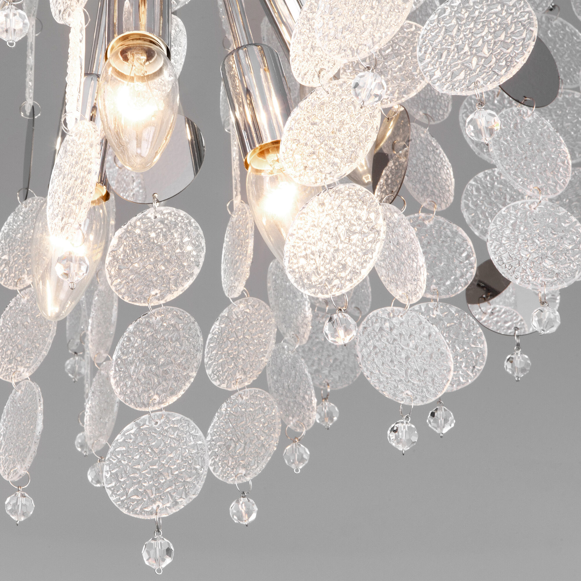 Задействуются лампы с цоколем E14 мощностью 60 Вт, количеством 9 шт. Цвет модели a053991: Хром.