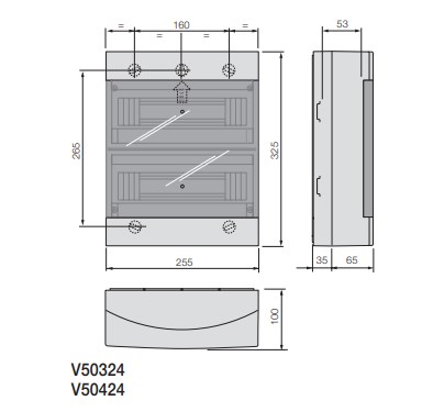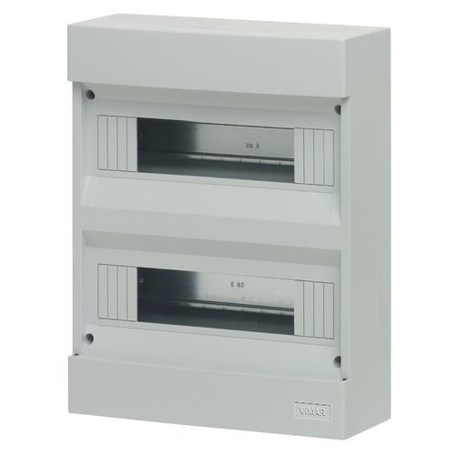 V50324 Настенный коммутатор Vimar Arke 24 модулей (12+1), гладкие стенки, в комплекте с DIN-рейкой (60715 TH35), серый RAL 7035. Рассеиваемая мощность: 37 W