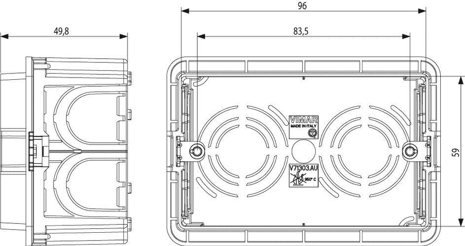 V71303.AU Монтажная коробка Vimar Arke черная Для кладки GW 650 °C