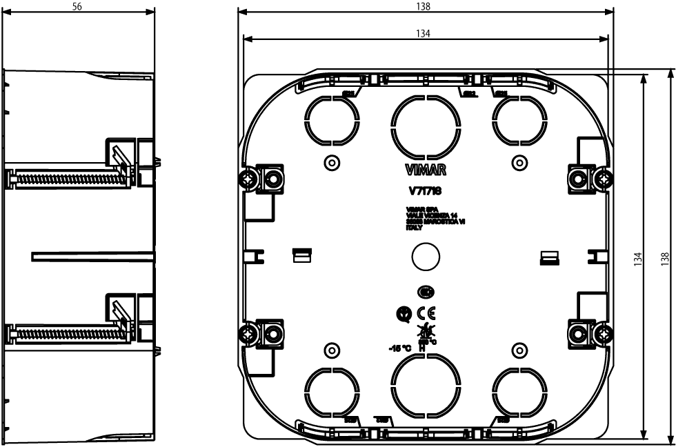 V71718 производится брендом Vimar, относящаяся к коллекции Arke Round. Габаритные размеры: длина 138 мм, ширина 138 мм.