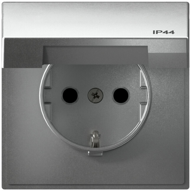 Влагозащищенная розетка электрическая IP44 со шторками с откидной крышкой (Алюминий) Systeme Electric (Schneider Electric) Art Gallery GAL440346