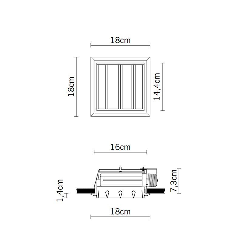 Встраиваемый светильник D90F0201 от бренда Fabbian, относящаяся к коллекции Plano. Габаритные параметры: длина 73 мм, высота 180 мм, ширина 180 мм.