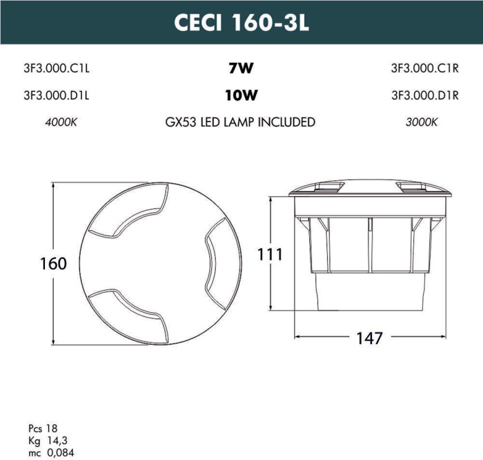 Встраиваемый светильник уличный CECI 3F3.000.000.AXD1L Fumagalli