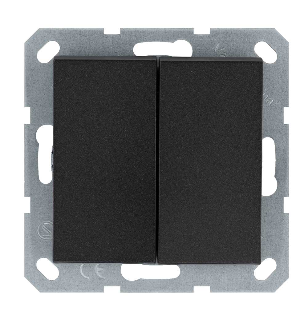 Выключатель двухклавишный проходной 10A 250V~ с накладкой, Антрацит Jasmart G-Series G3022B