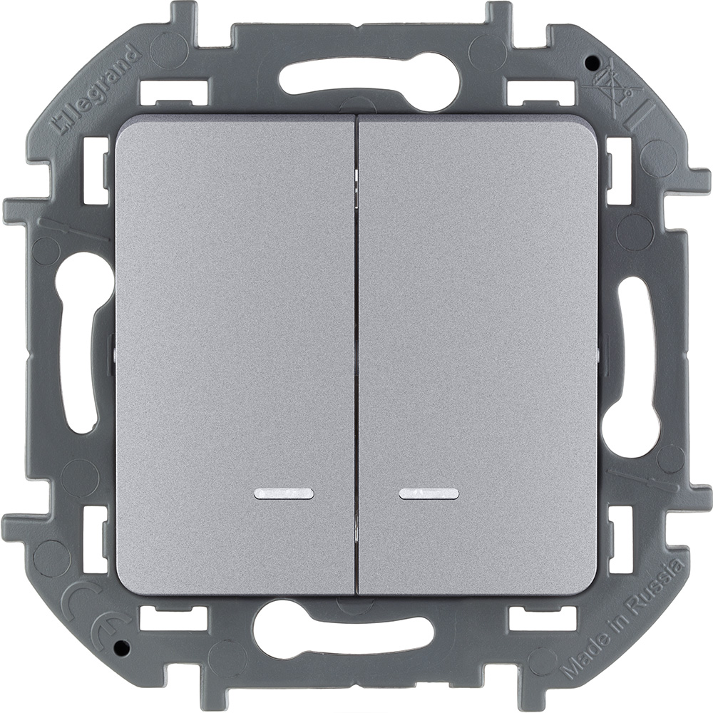 Выключатель двухклавишный с подсветкой/индикацией 10 AX - 250 В Алюминий Legrand INSPIRIA 673632