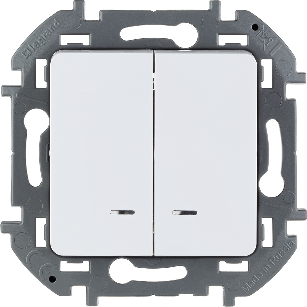 Выключатель двухклавишный с подсветкой/индикацией 10 AX - 250 В Белый Legrand INSPIRIA 673630
