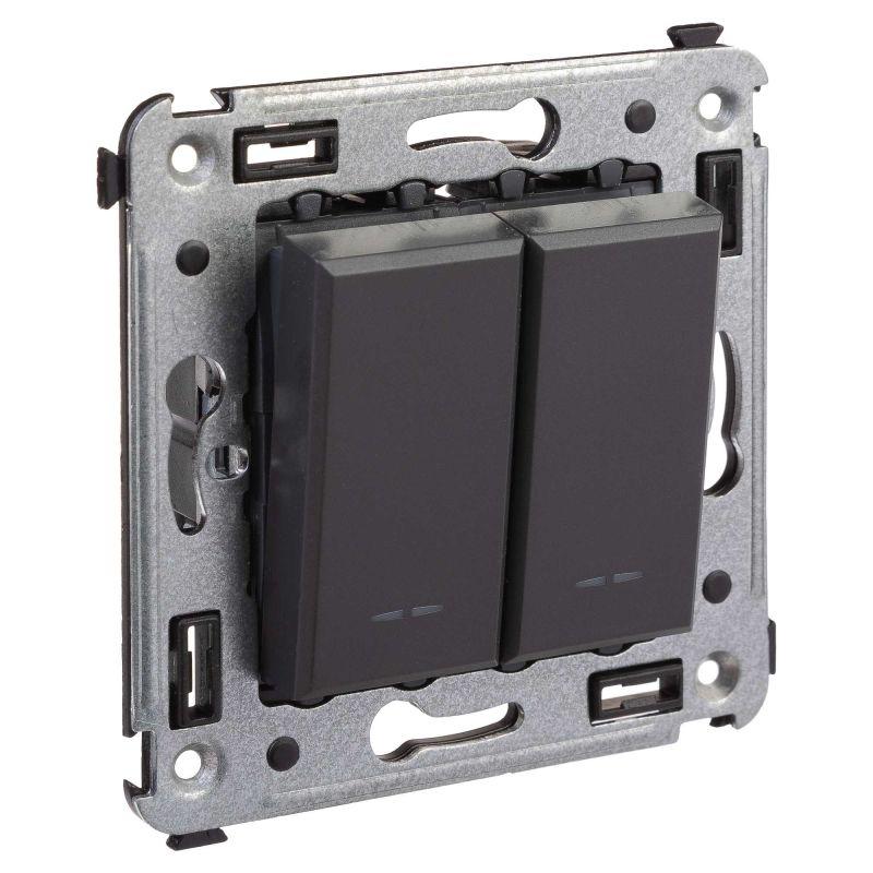 Выключатель двухклавишный в стену Черный матовый DKC Avanti 4412104