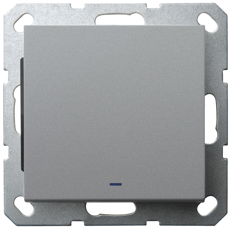 Выключатель со светодиодом, проходной, одноклавишный, в комплекте с накладкой алюминий, 10A 250V~ Jasmart G-Series G3012NS