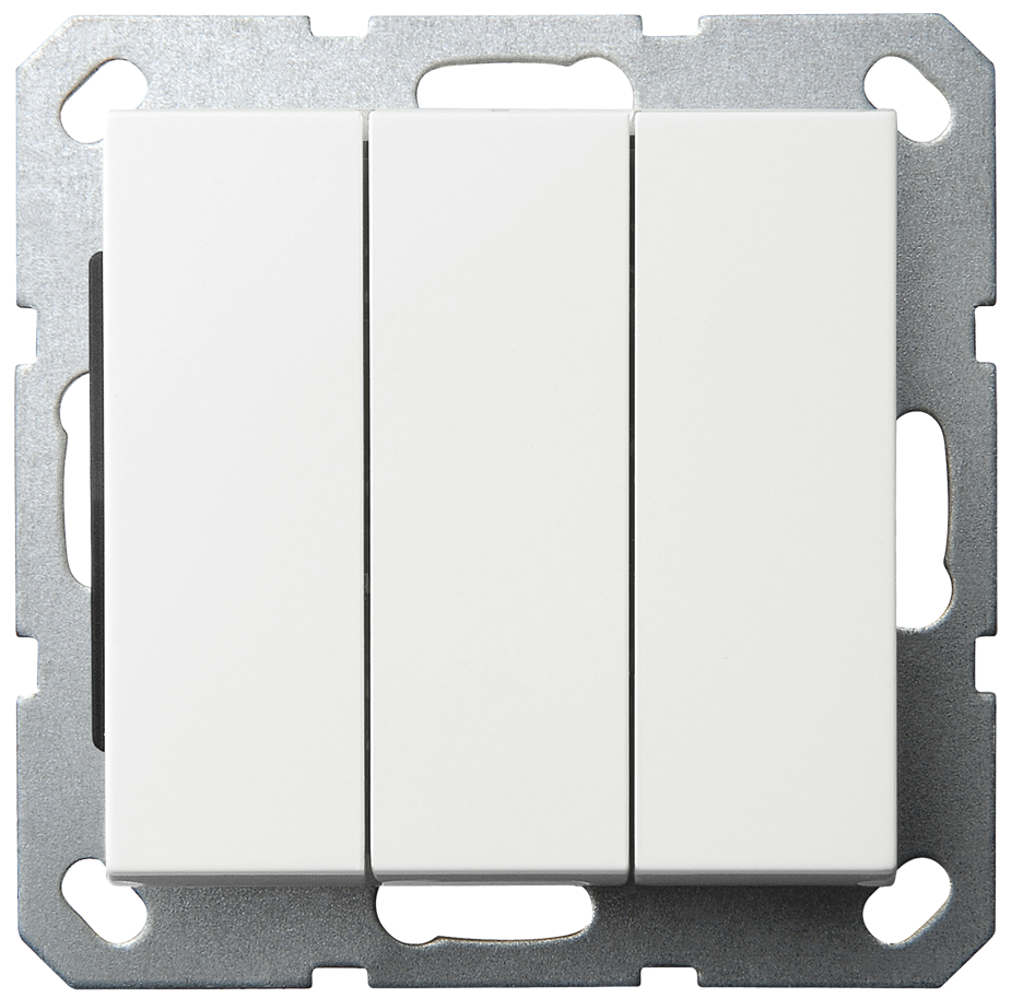Выключатель трёхклавишный с накладкой белый глянцевый, 10A 250V~ Jasmart G-Series G3031W