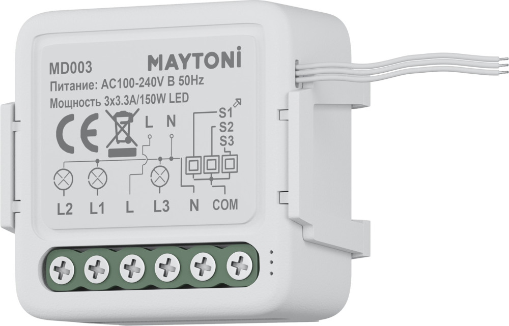 Выключатель Wi-Fi Модуль MD003 Maytoni имеет основные параметры:, мощность 150 Вт, напряжение 220 В , влагозащита IP20, цвет Белый.