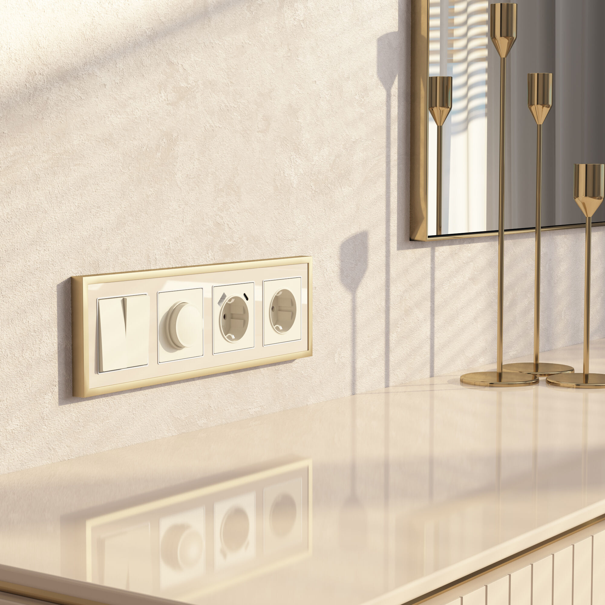 W0042851 Рамка на 4 поста Baguette (айвори/латунь) Werkel a062783