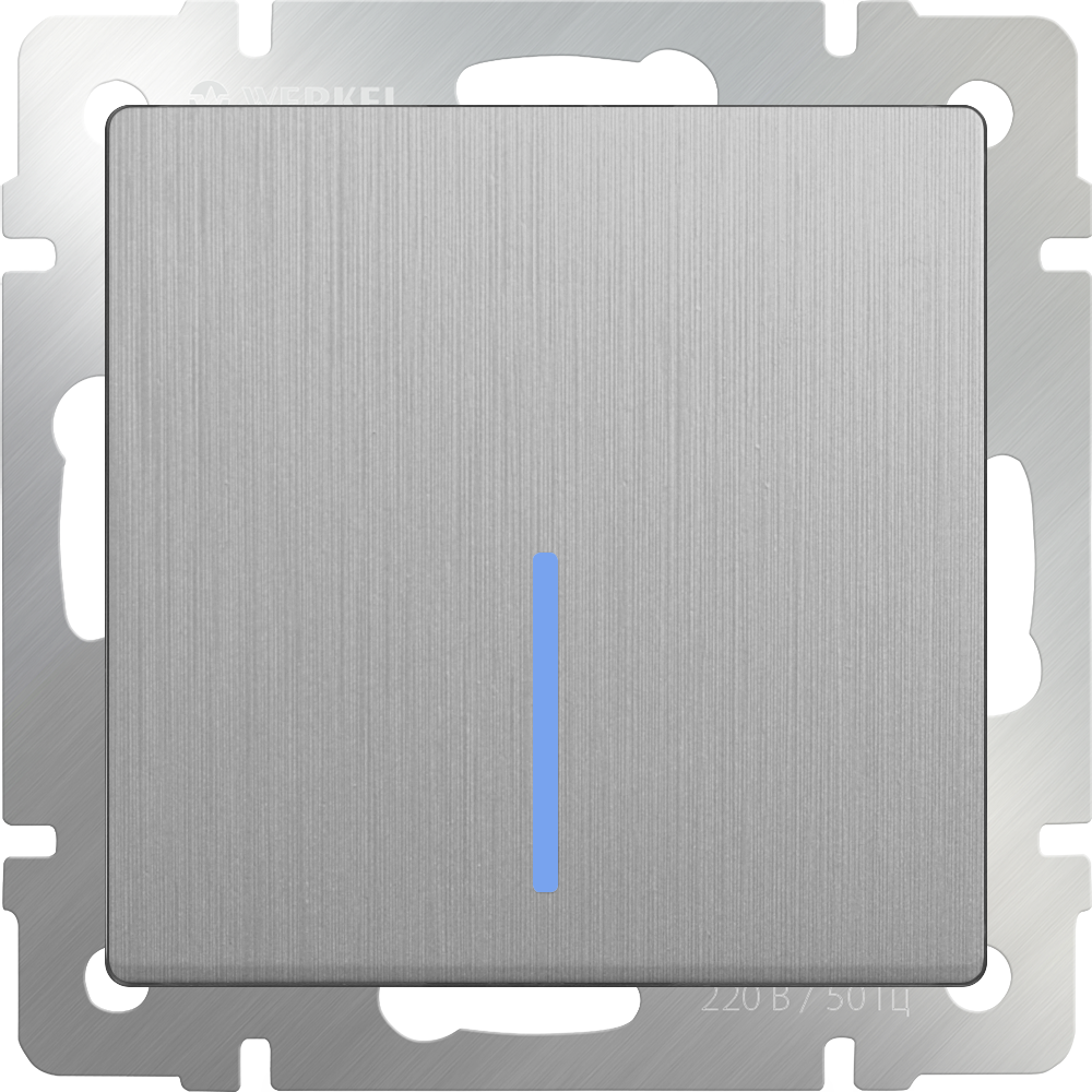 Выключатель одноклавишный с подсветкой, cеребряный рифленый Antik Werkel a051364 W1110109