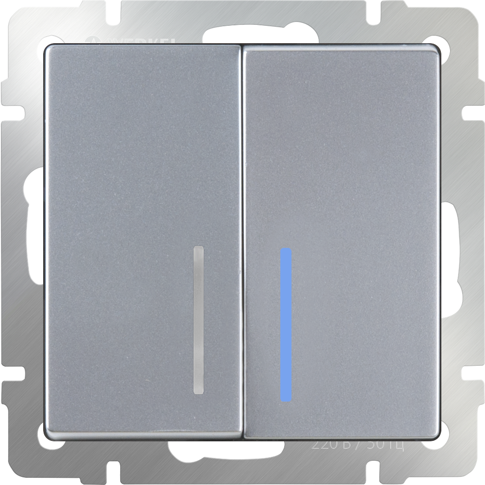 W1122106 Выключатель двухклавишный проходной с подсветкой (серебряный) Antik Werkel a051524