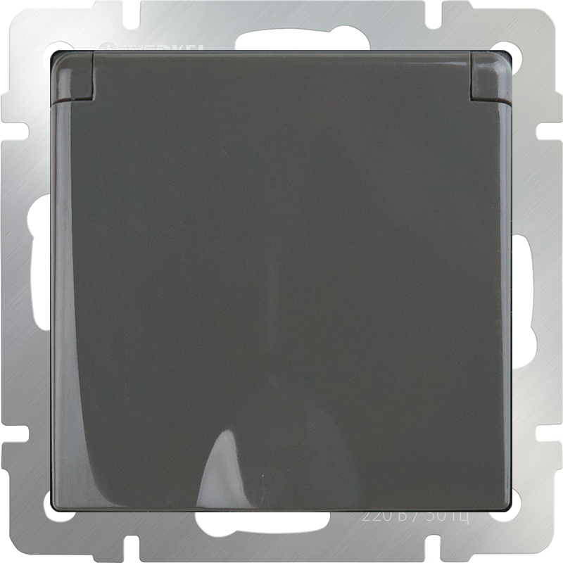 W1171207 Розетка влагозащ. с зазем. с защит. крышкой и шторками (серо-коричневый) Antik Werkel a050839