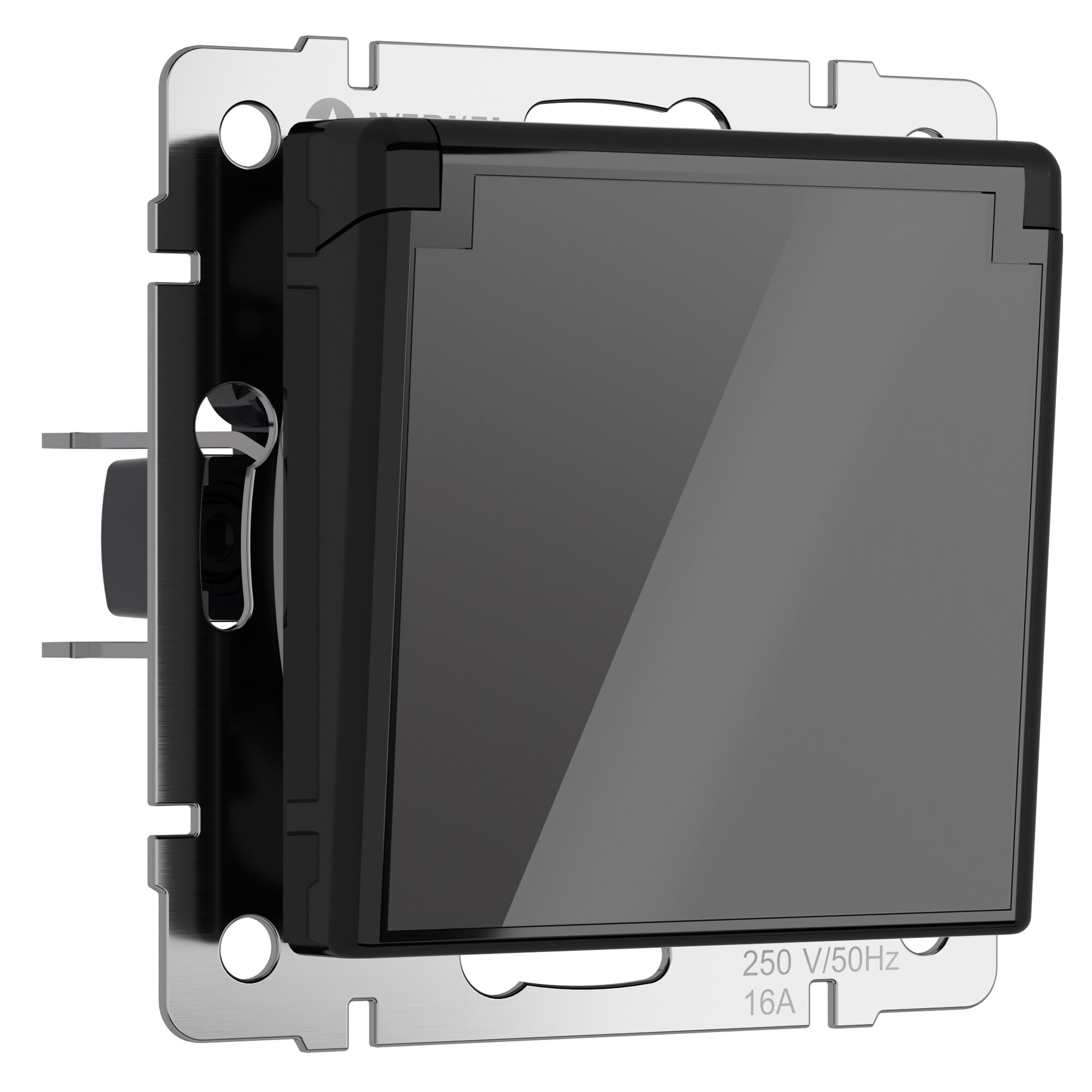 W1171248 Розетка влагозащ. с зазем. с защит. крышкой и шторками (черный акрил) Werkel a064043