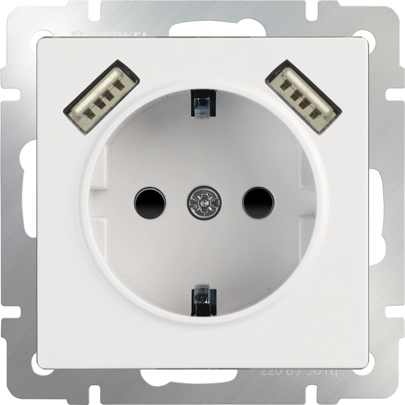 W1171501 Розетка с заземлением, шторками и USBх2 (белая) Antik Werkel a051141