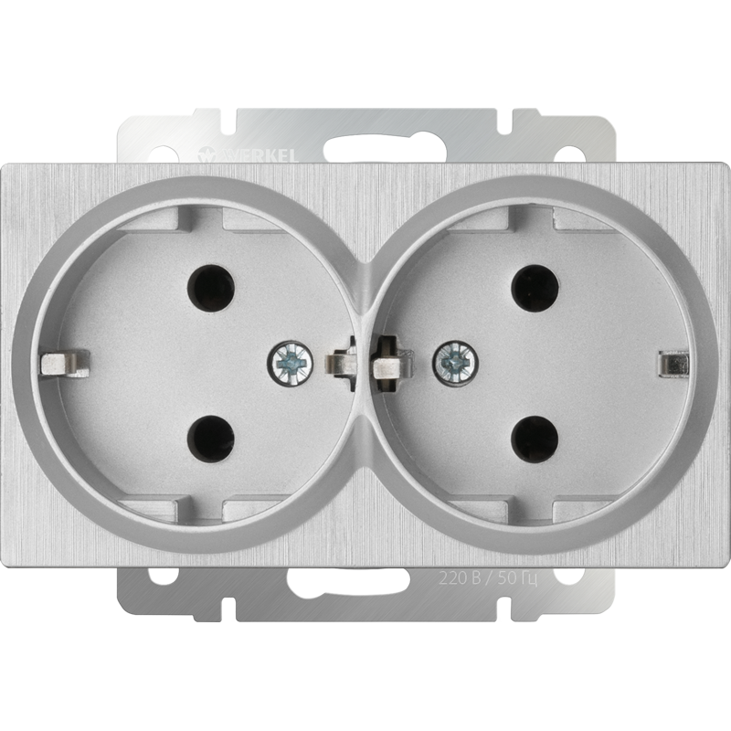 W1172009 Розетка двойная с заземлением (серебряный рифленый) Antik Werkel a051347