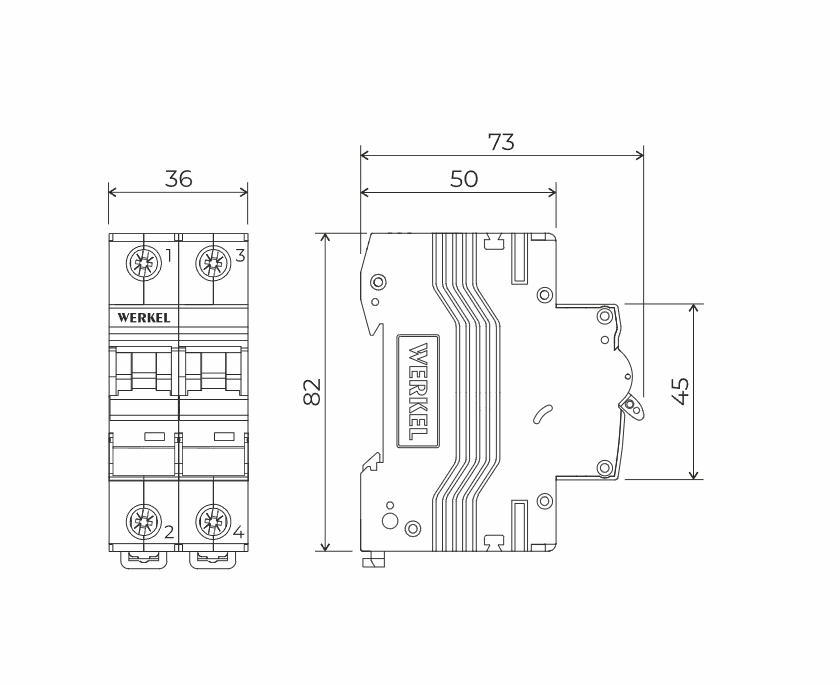 Модель АВ W902P164 – это двухполюсной механизм (2P), который применяется для защиты нейтрального и фазового провода однофазных цепей. Автоматический выключатель Werkel обладает номинальным током 16 А с время-токовой характеристикой C (универсальный бытовой). Отключающая способность составляет 4,5 кА.