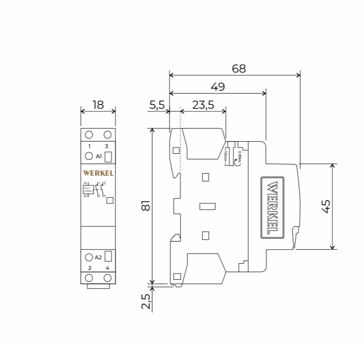 W941M25O Контактор модульный 25 A 2NO (1 мод.) Werkel a069474