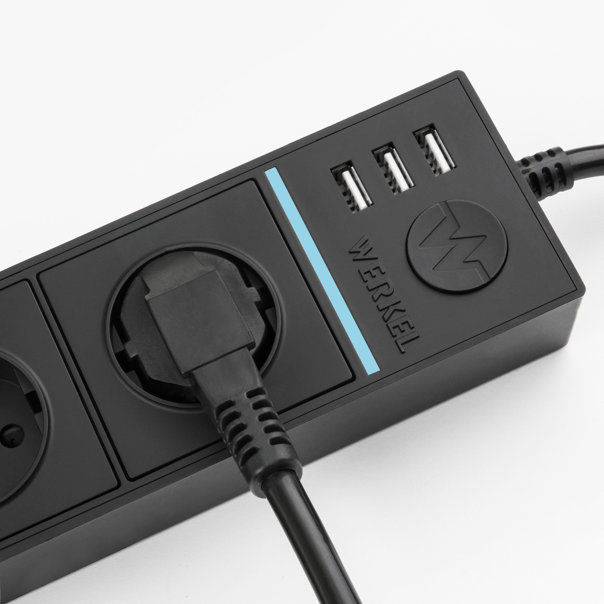 WL20-04-03 Розеточный блок 4-х местный + 3 USB черный Diamant Werkel a039975